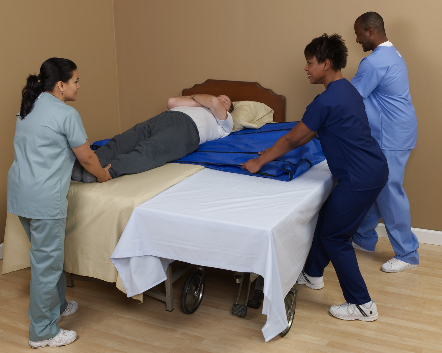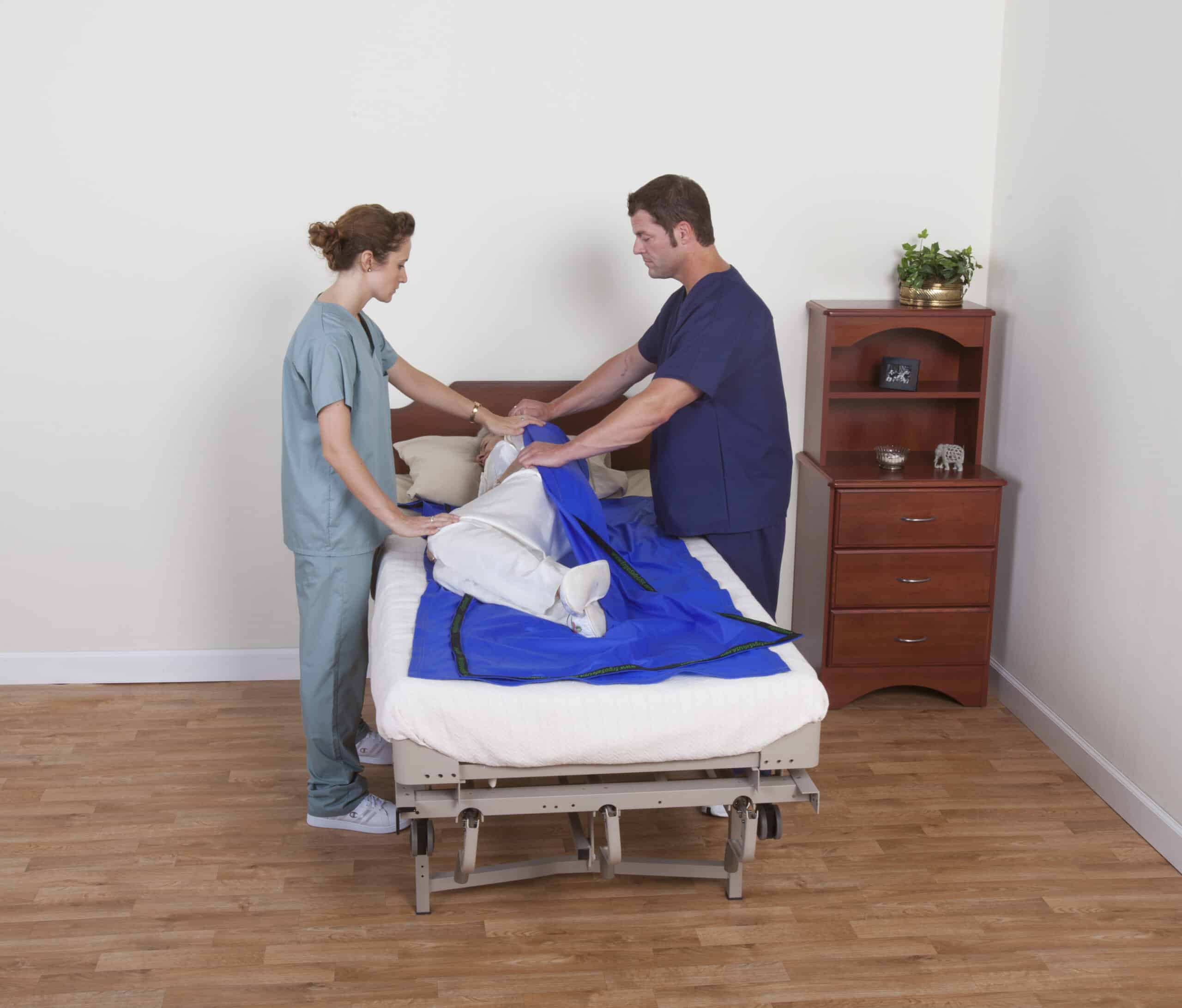 The ErgoSlide® Standard makes repositioning and turning a patient in bed effortless. It can also facilitate lateral transfers from bed to gurney. Made of heavy-duty nylon, this version can last for four years or more with proper care and laundering.