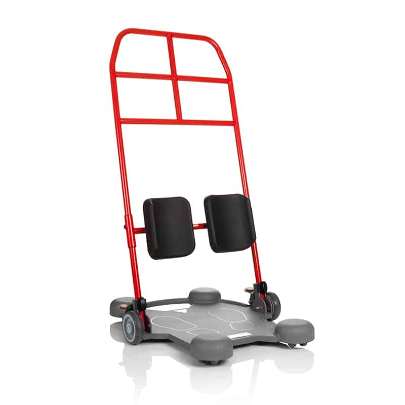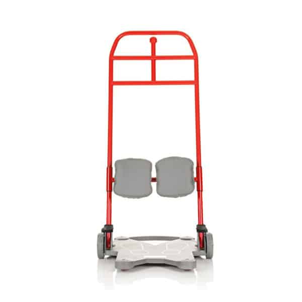 A low center of gravity and a broad underlying support surface, with wheels at all corners, eliminate the risk of tipping. Two large, fixed and lockable center wheels right in front of the rising ladder carry most of the user’s weight and make the ReTurn easy to roll and directionally stable while the four castors at the corners ensure easy maneuvering, even in confined spaces.